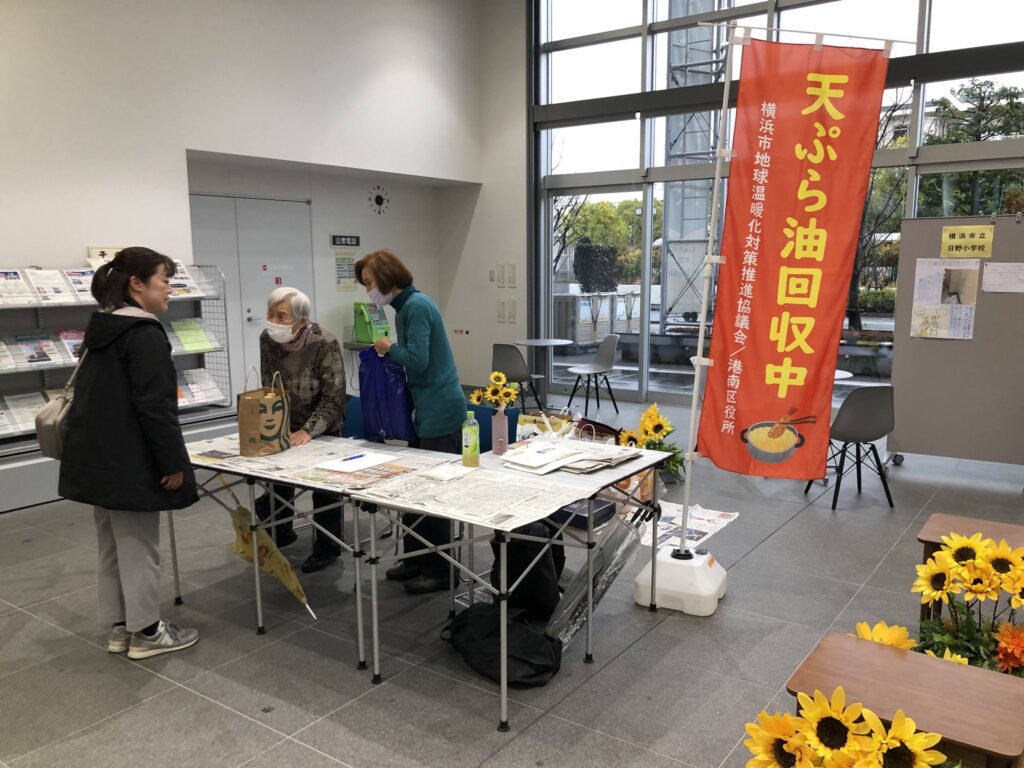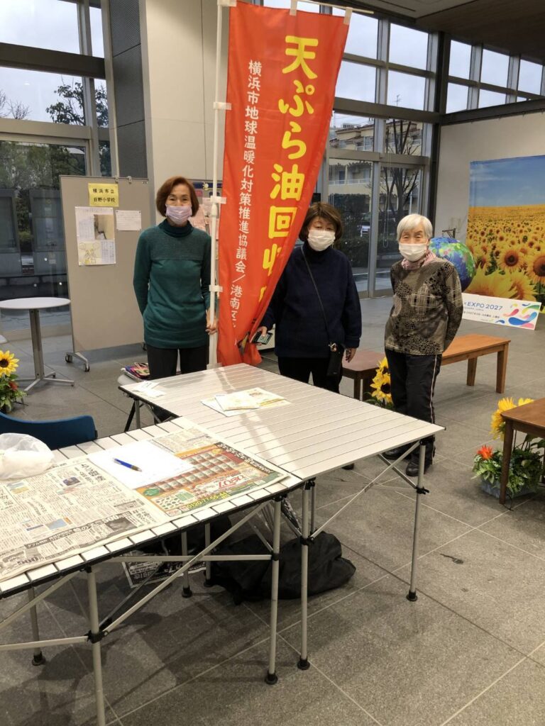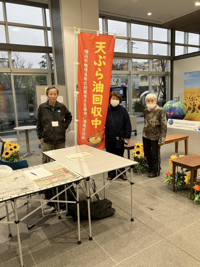 2月25日は港南区にて廃食油回収―横浜市地球温暖化対策推進協議会台所油田プロジェクト活動を実施しました。