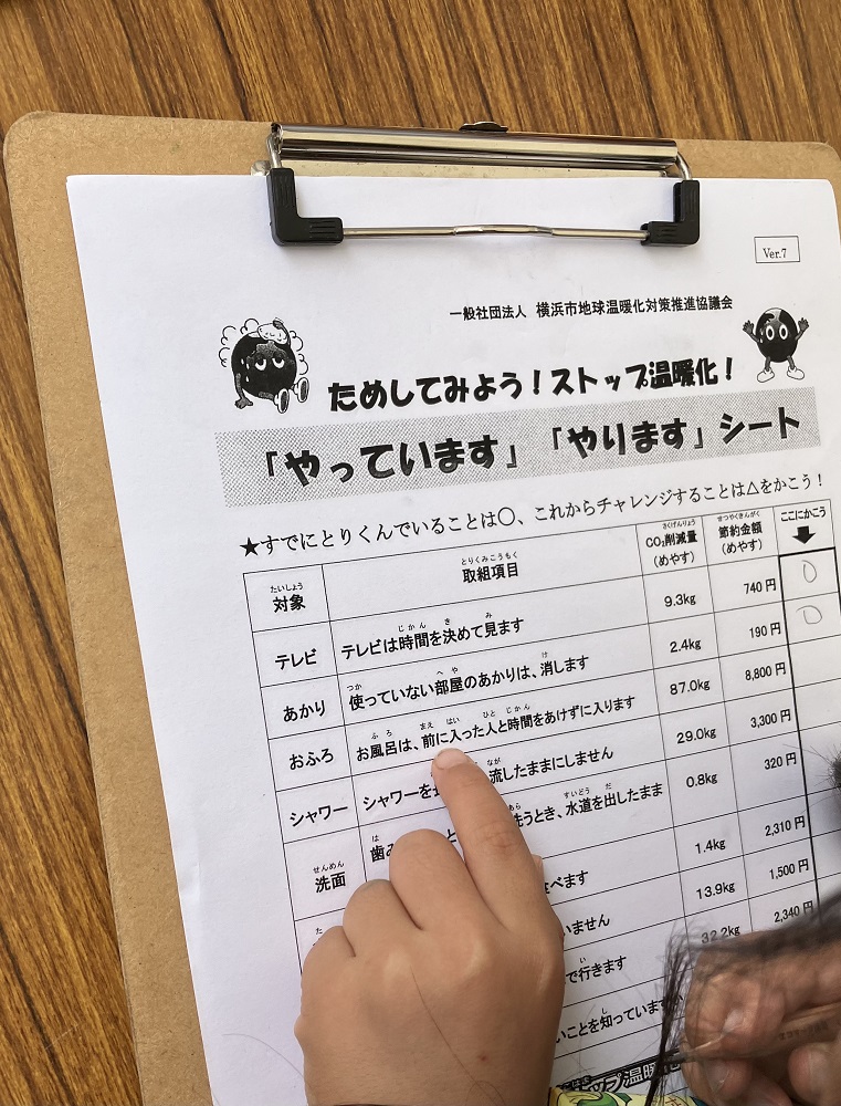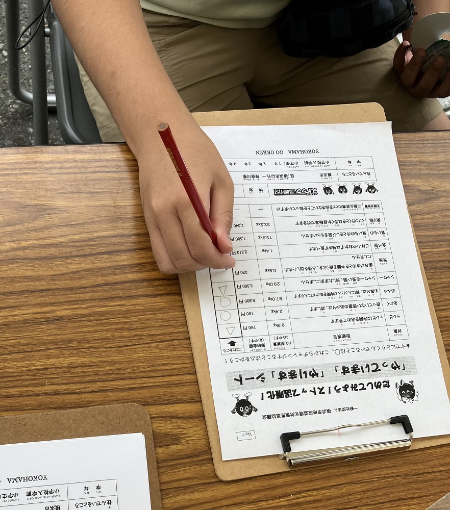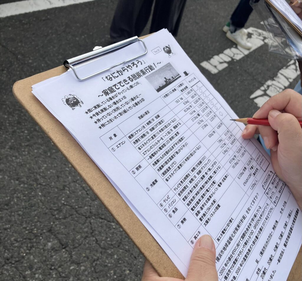 家庭でできる脱炭素行動アンケートにもたくさんの方が次々にご協力下さり、用紙を挟んだバインダー待ちされるほどでした。