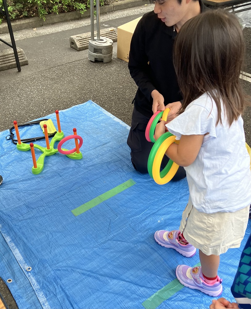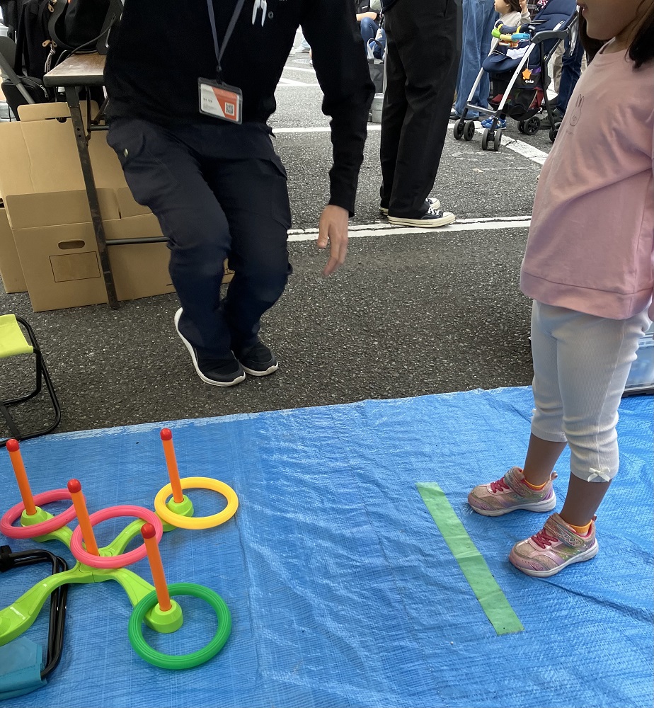 日天株式会社はソーラーパネルの紹介と子ども向けに輪投げを実施して、子どもたちの笑顔がたくさん見られました。