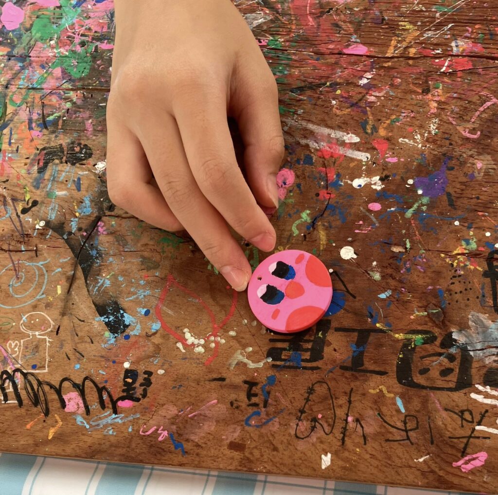 メイン通路から少し入った所のブースで開催当初は来場者も少なかったのですが、時間が経つにつれ木のキーホルダー作りを楽しまれる親子連れや小学生でいっぱいになりました。
