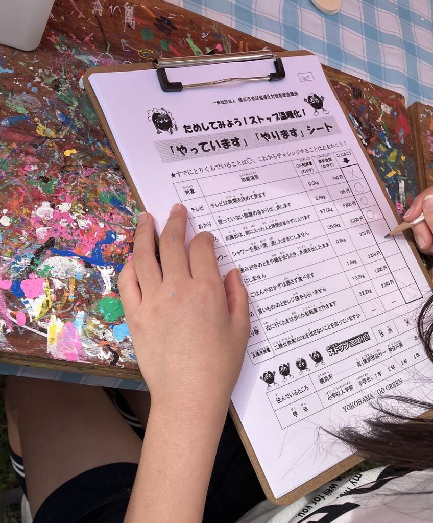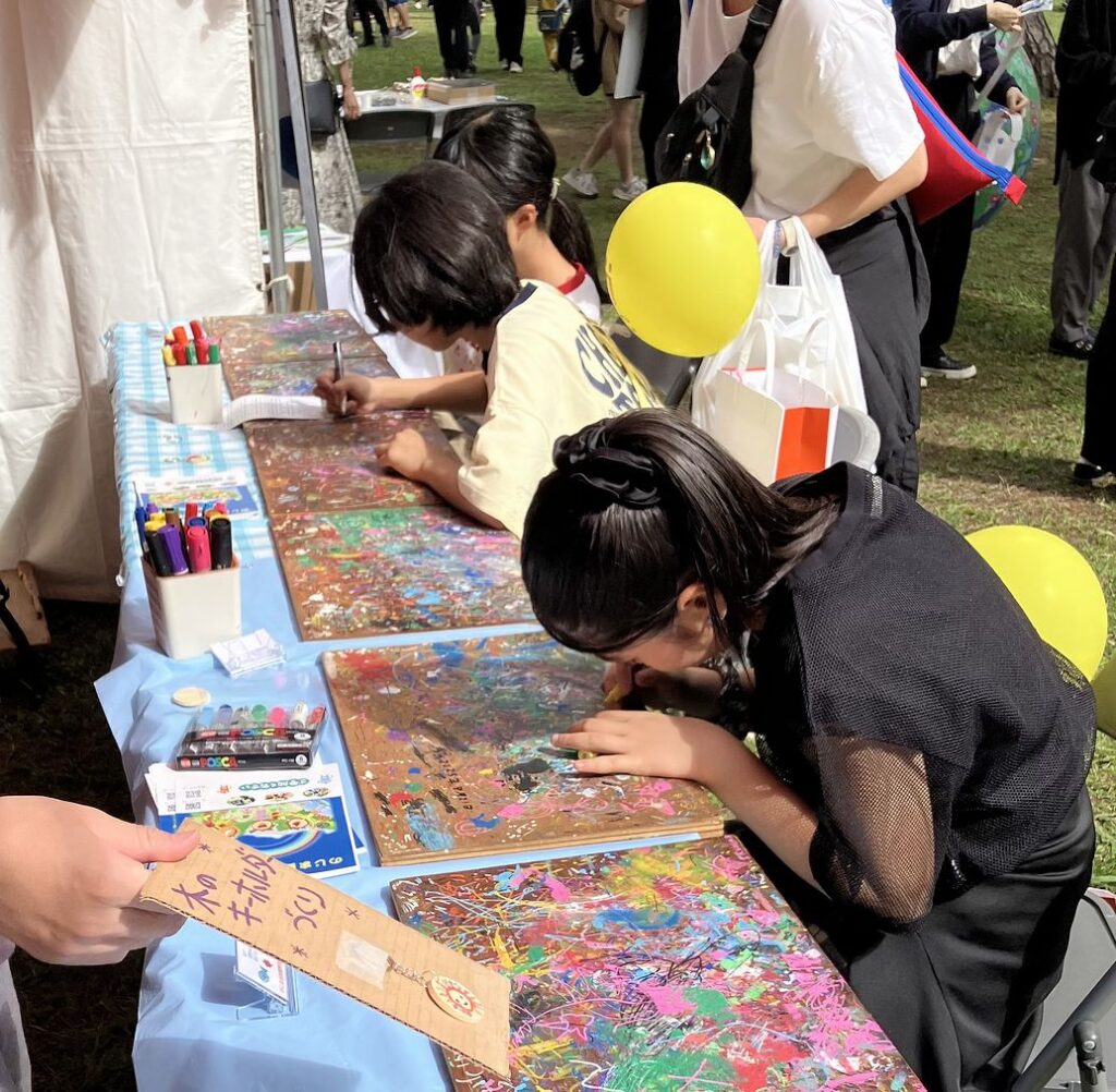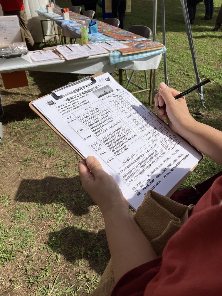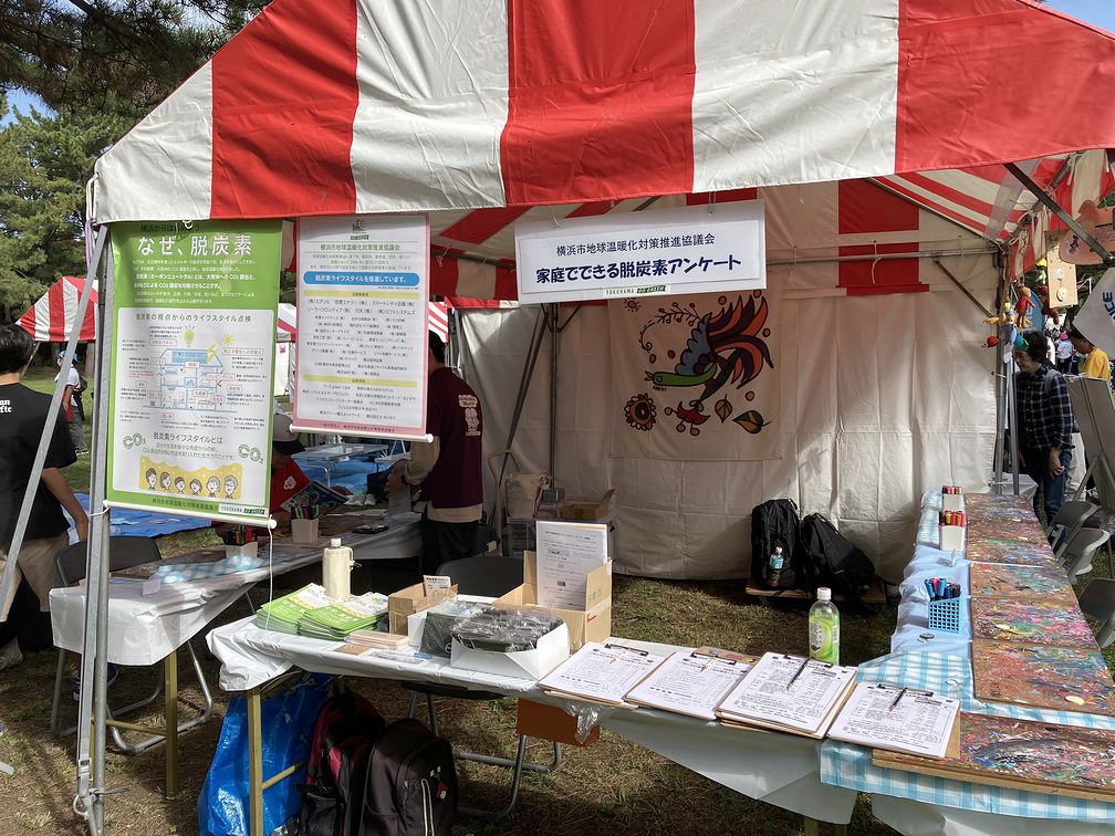 いきいきフェスタが開催され横浜市地球温暖化対策推進協議会は家庭でできる脱炭素行動アンケートを、のじま自然観察探見隊は木のキーホルダーのワークショップを協働で出店しました。