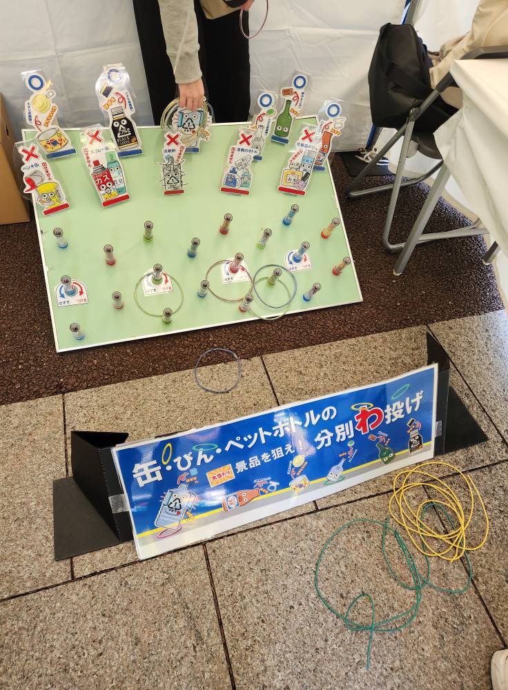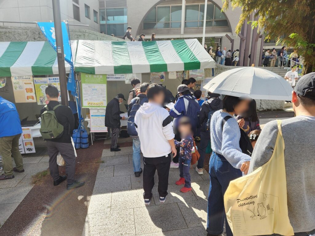 秋晴れの中 都筑区民まつりが終わりました 1時間あまり前に会場に入り 資源循環公社の分別ゲームと協議会の脱炭素ライフスタイルアンケートの準備を整え 開会を迎えるました するとすぐに行列のできる出店テントの状態になってしまい 歩行者専用路を塞がないように協力をお願いしました