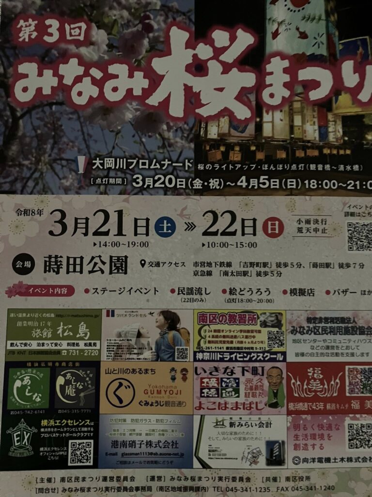 令和7年度18番目の南区みなみ桜まつりは、蒔田公園にて3月21日(土)22日(日)2日間の開催でした。